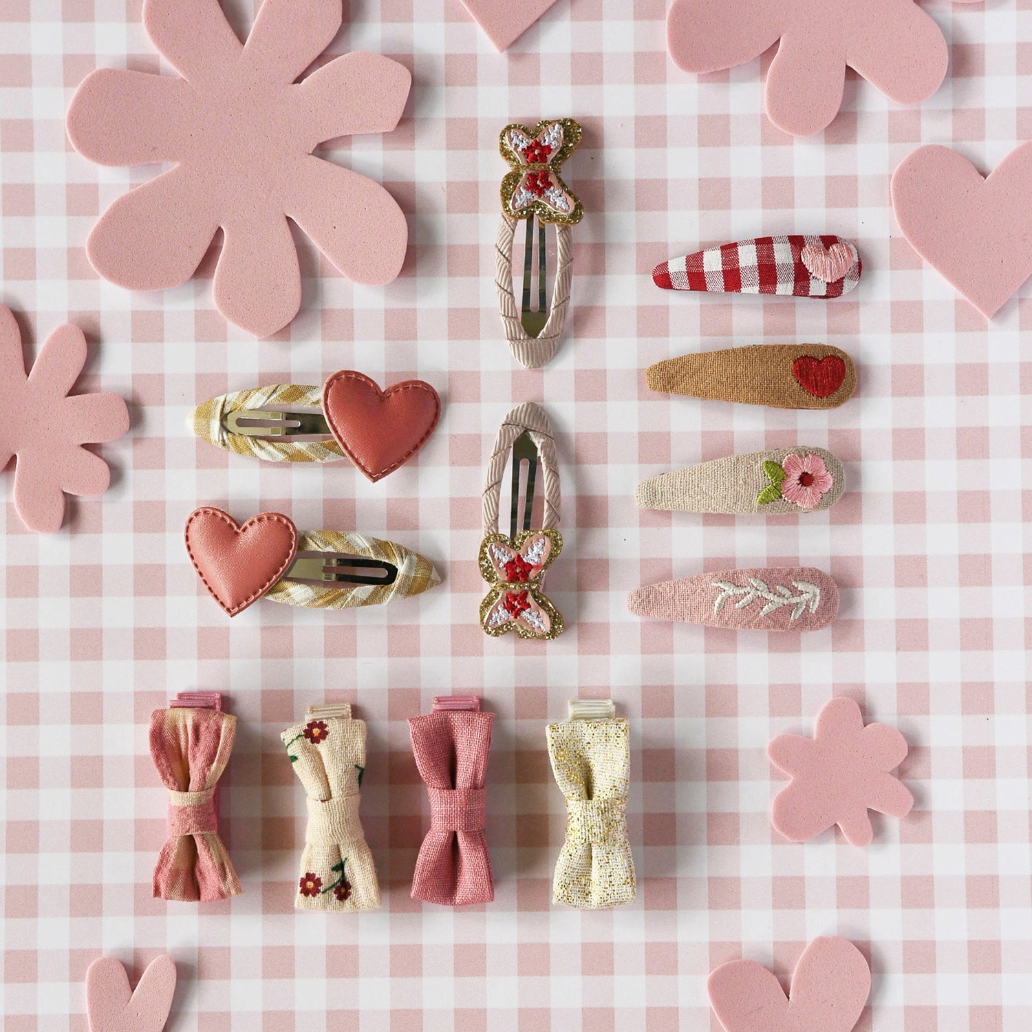 Volez comme un papillon champêtre ! Deux papillons dorés, aux délicats détails roses et rouges, sont posés sur des pinces à linge recouvertes d'un ruban gros-grain rose.