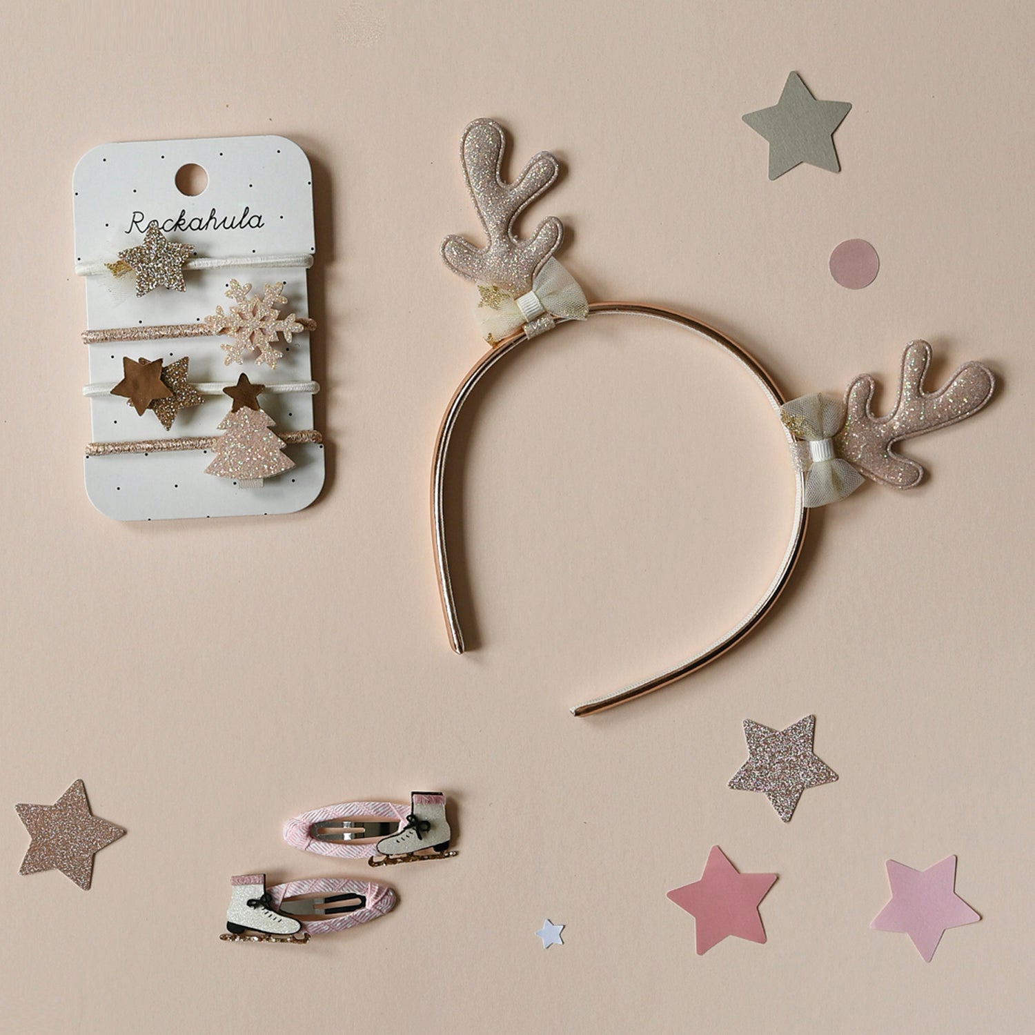 Avec ces magnifiques bottes de patinage à paillettes, vous pourrez virevolter et virevolter tout au long de la saison hivernale ! Chaque botte est fixée par une pince à ruban rose pâle.