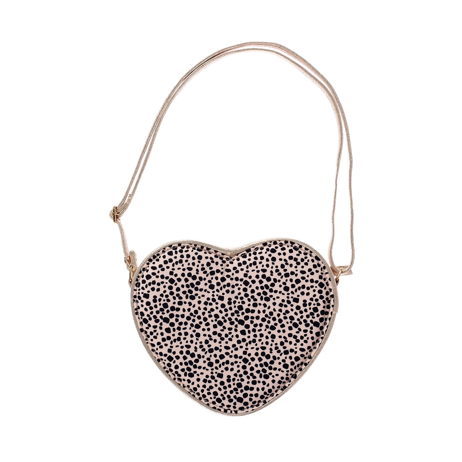 Affirmez votre côté sauvage avec notre sac cœur léopard. Confectionné dans un tissu imprimé léopard et orné de similicuir doré, ce sac est l'accessoire parfait pour compléter n'importe quelle tenue ! Il est doté d'une fermeture éclair, d'une doublure dorée à pois et d'une bandoulière réglable en similicuir doré avec point de rupture pour plus de sécurité.
