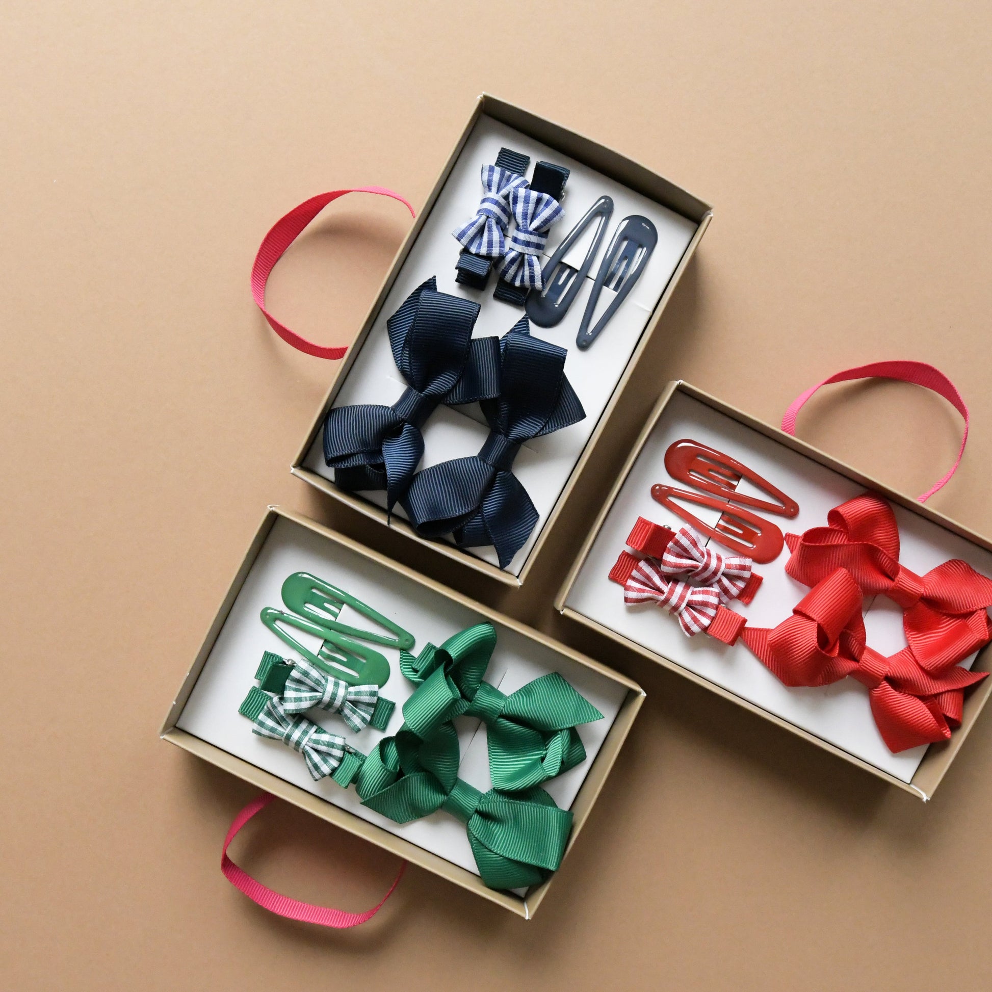 Pratique et original, ce lot de 16 accessoires pour cheveux assortis est un cadeau idéal pour l'école et bien plus encore ! Disponibles en rouge, bleu ou vert, ils sont présentés dans une boîte cadeau imprimée en forme de sacoche, que vous pourrez conserver pour les ranger.