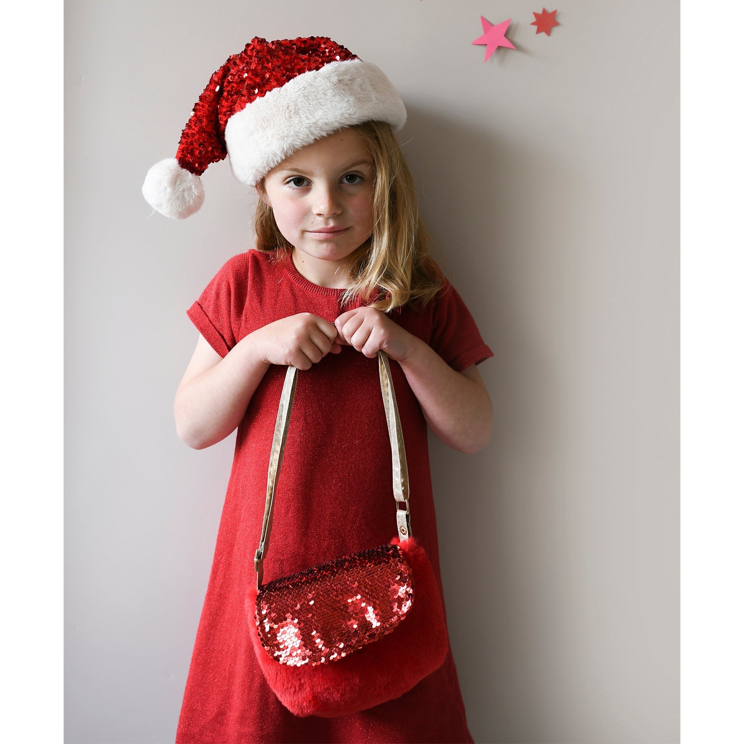 Notre sac à sequins scintillants est le sac idéal pour les fêtes de fin d'année ! Confectionné en fausse fourrure douce, il est orné d'un rabat à sequins rouges et d'une bandoulière dorée scintillante. Entièrement doublé de velours, il se ferme par un aimant et sa bandoulière réglable est munie d'un système de sécurité.