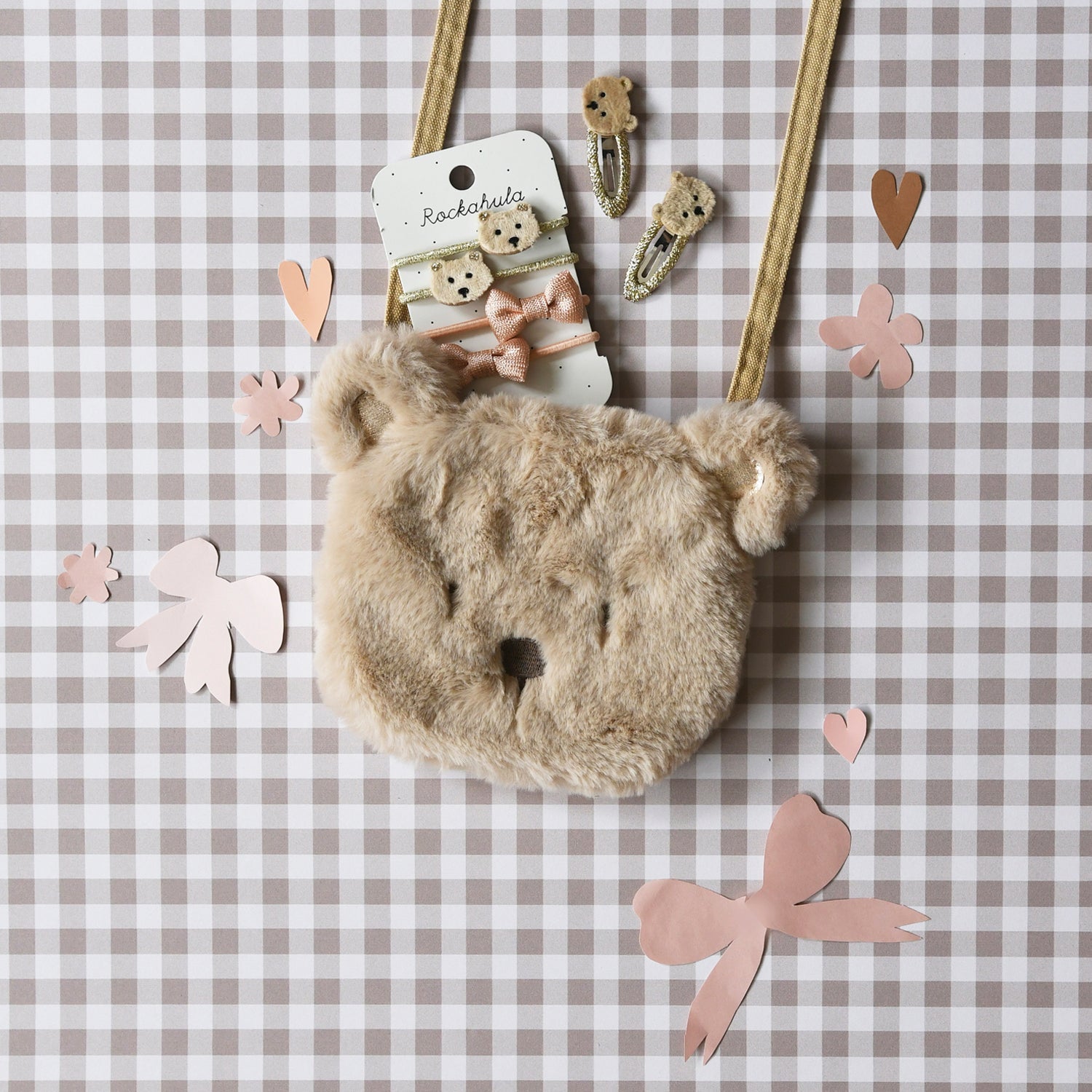 Notre adorable petit sac en forme d'ourson en peluche est idéal pour garder tous vos trésors en sécurité ! Confectionné dans une fourrure brune ultra-douce ornée de détails dorés et entièrement doublé de tissu à pois, ce sac est doté d'une fermeture magnétique et d'une bandoulière avec point de rupture pour plus de sécurité.